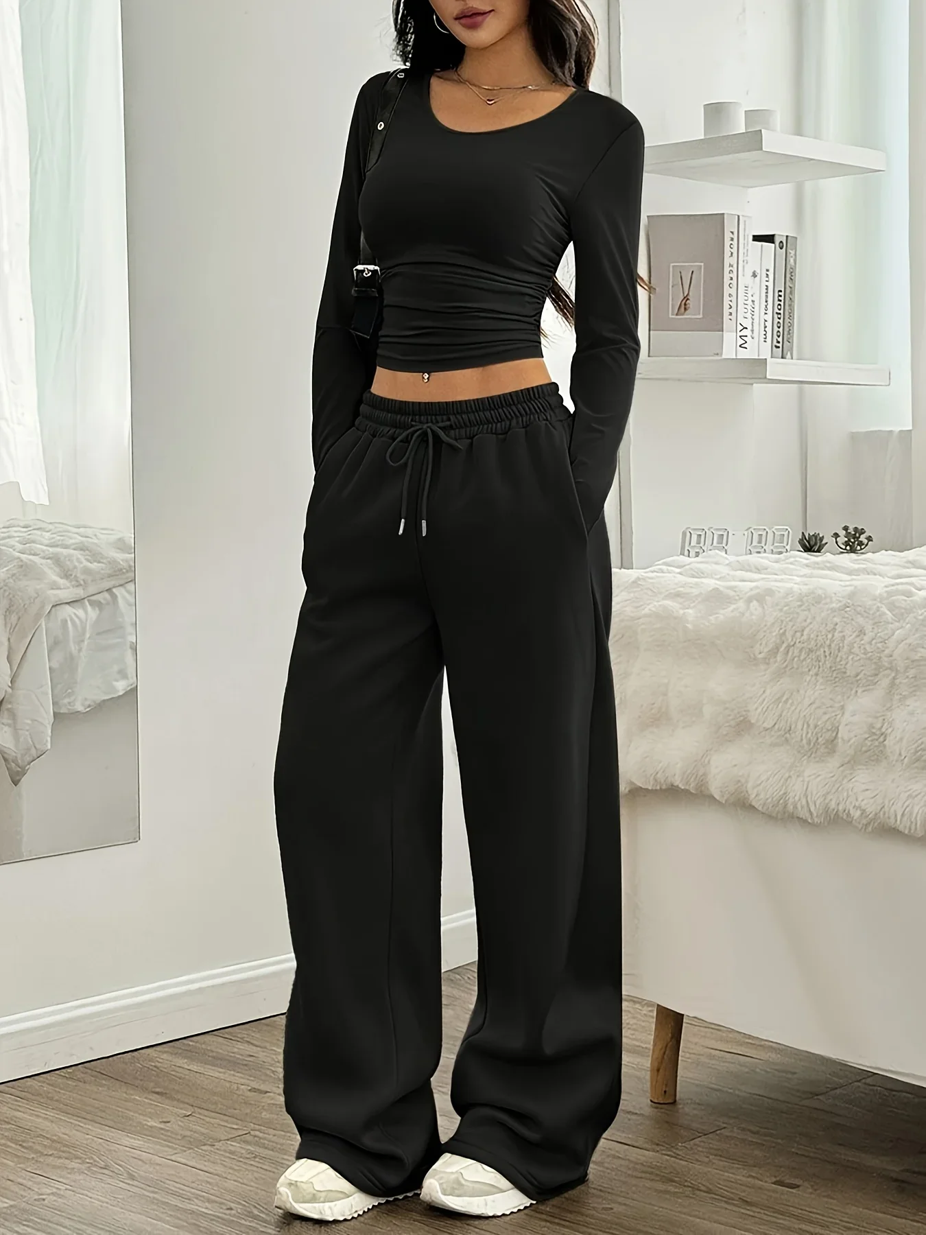 Women Jogger Cotton Pants Casual Drawstring Loose Unisex Wide Leg Straight Pants Sweatpants Spring Autumn Baggy Gym Track Pants